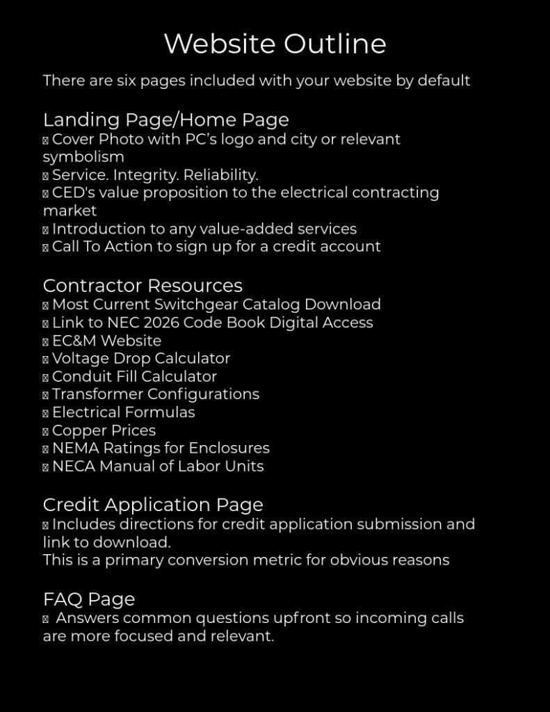 Hazleton supports a high volume of electrical work tied to distribution centers, industrial facilities, and ongoing commercial operations. Contractors in this market are often managing active sites that require consistent material flow, quick turnaround, and reliable sourcing. A well-positioned website helps communicate what your location actually handles—capturing contractors who are evaluating supply partners before making contact.